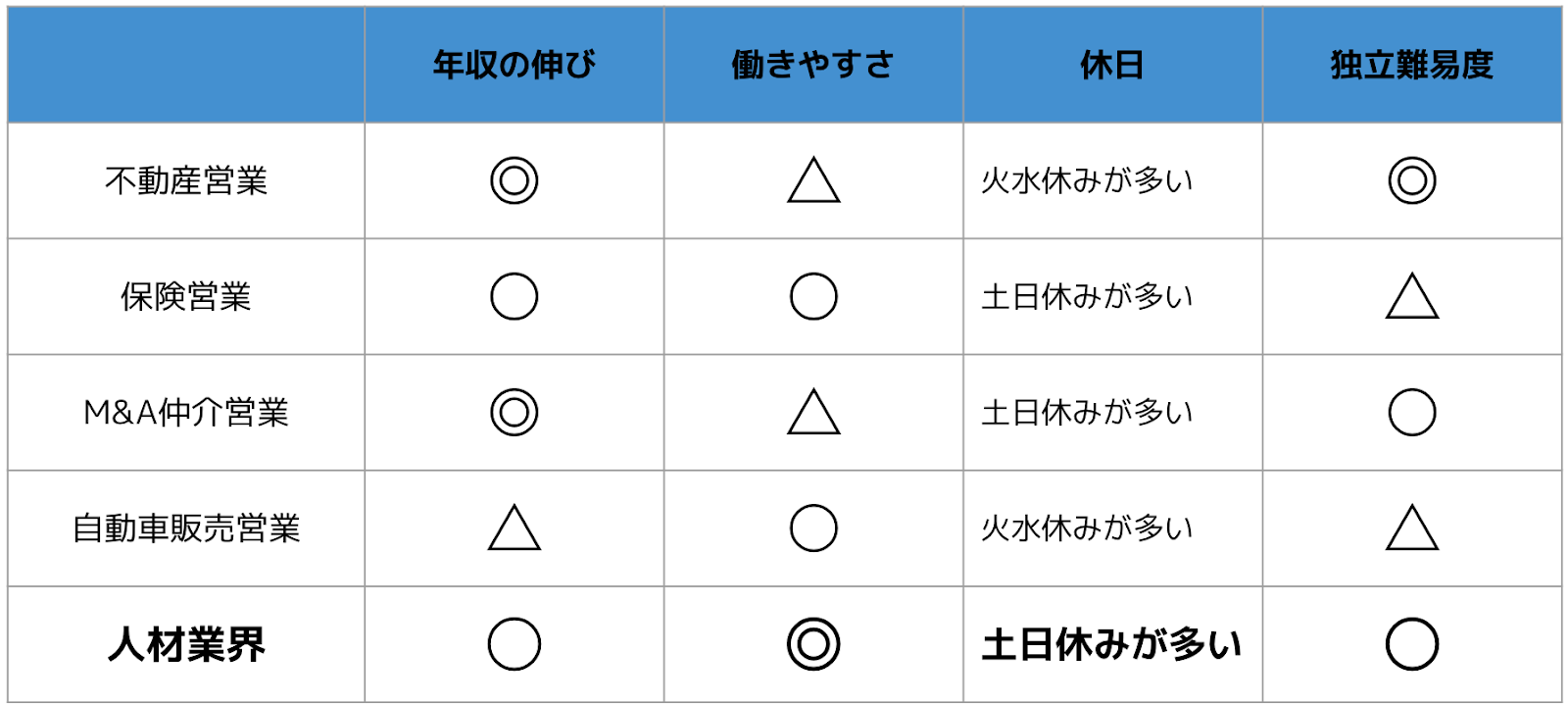 ただその点以外にも視野を広げたときに、バランス感が良いのが人材紹介の営業とも言えるでしょう。